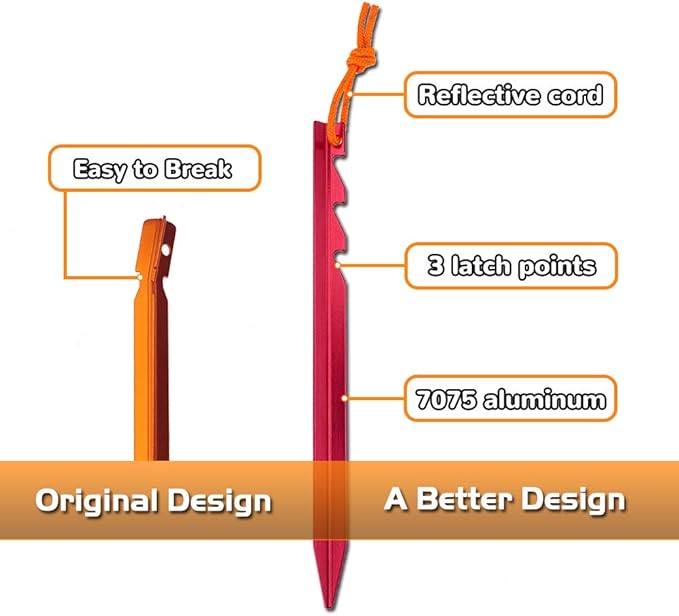 • REFLECTIVE CORDS - Each stake includes a highly reflective pull cord, which can ensure easy removal and visibility so you don't unneccessarily kick them around your tent at night.
