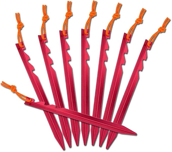 • PREMIUM MATERIAL - The ANYGEAR stakes are constructed from 7075 aircraft-grade aluminum alloy. Ultralight but much higher tensile strength, and you won't have to worry about the hassle of a broken tent peg in the backcountry.