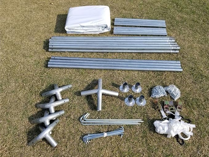 • STURDY GALVANIZED STEEL FRAME: Built with a 1.5" diameter galvanized steel frame and 1.25" schedule 40 steel pipe fittings, these outdoor canopies are zinc-plated for durability; they do not require a center pole, providing optimal space
