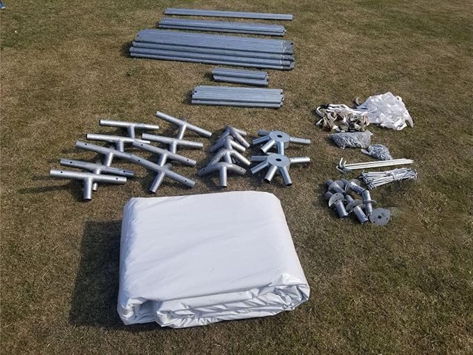 • INCLUDES: The package includes a Red/White Stripe PVC vinyl tent top, 1.5-inch steel frame tubing, steel pins, steel base plates and fittings that are resistant to rust and corrosion and a storage bag. Each piece of this inclusion is expertly designed and rigorously evaluated for durability