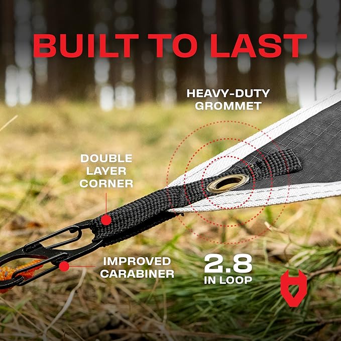 • STAY DRY WITH 100% WATERPROOF HAMMOCK TARP. Protect yourself from rain, wind and snow with this dirt-resistant, waterproof rain tarp. Suspend it above ground as a hammock cover. Or use it as a tent groundcover, a windbreaker, backpacking tarp, or survival tent.