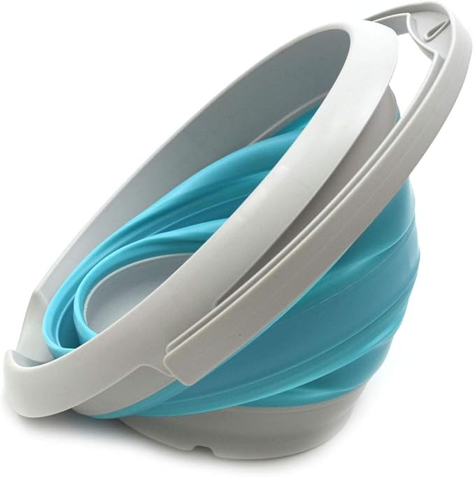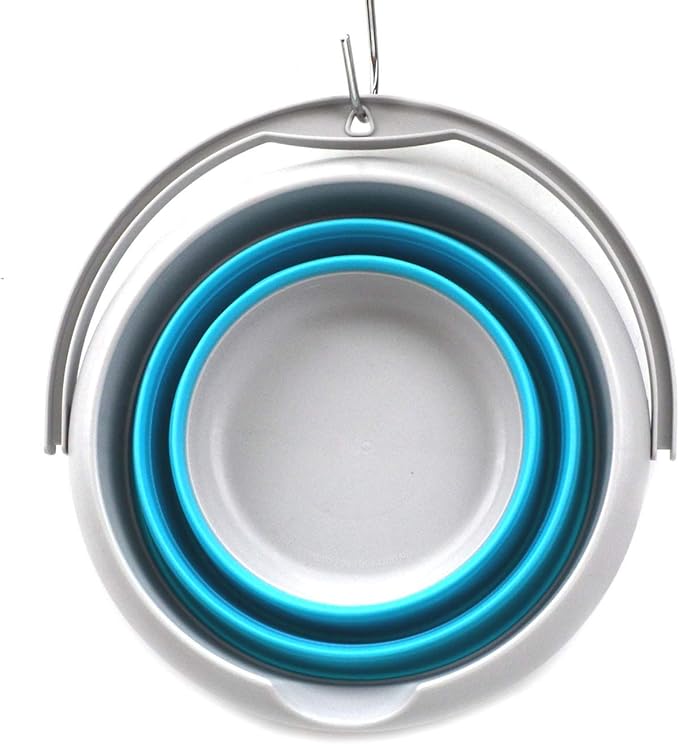 SAMMART 5L / 1.32 Gallon Collapsible Plastic Bucket - Foldable Round Tub - Portable Fishing Water Pail - Space Saving Outdoor Waterpot (5L Round, Grey/Bright Blue)