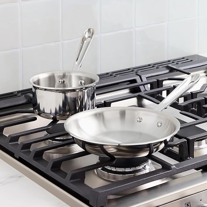 • Classic tri-ply construction, made with a responsive aluminum core bonded together with 2 layers of durable, stainless steel all the way around for maximum durability and fast, even heat distribution