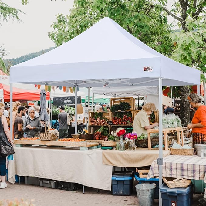 • ✅Large Space: 10 x 10 Pop Up Canopy with straight legs provides a true 100 square feet shade. Big enough for about 6-10 people to sit under it. Center height is 132 inch. Suitable for market stalls, parties, picnics or any outdoor events. MASTERCANOPY commercial canopy tent is suitable for both sunny and rainy days.