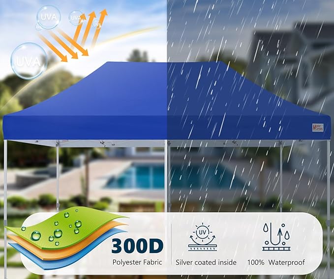 • ✅Large Space: 10 x 20 Pop Up Canopy with straight legs provides a true 200 square feet shade. Big enough for about 6-10 people to sit under it. Center height is 132 inch. Suitable for market stalls, parties, picnics or any outdoor events. MASTERCANOPY commercial canopy tent is suitable for both sunny and rainy days.