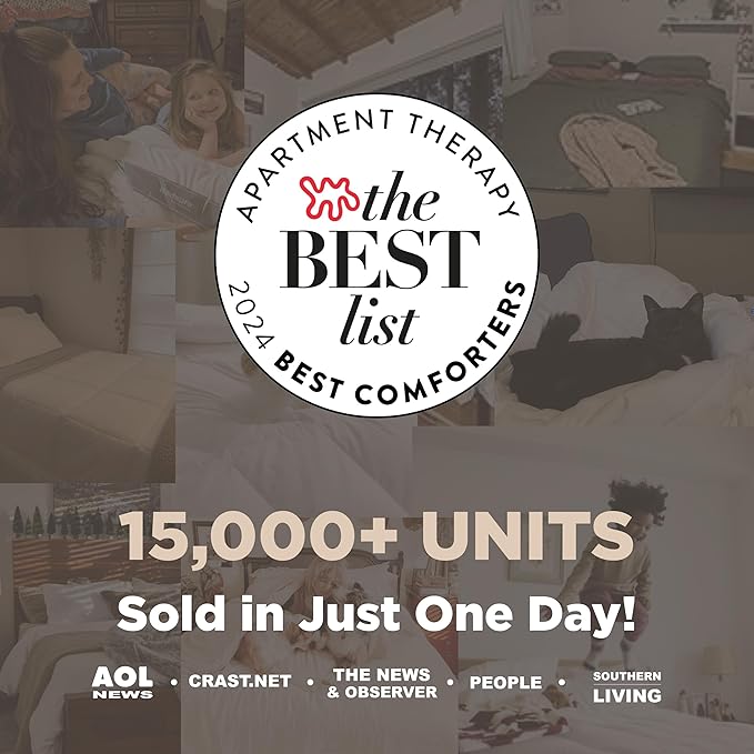 • ALL-SEASON COMFORT: Named one of the "Best Comforters" by Apartment Therapy, this down alternative comforter undergoes 32+ steps for a softer touch. Featuring a GentleSoft 300 GSM polyester fill and a durable shell, it provides warmth in winter and breathability in summer