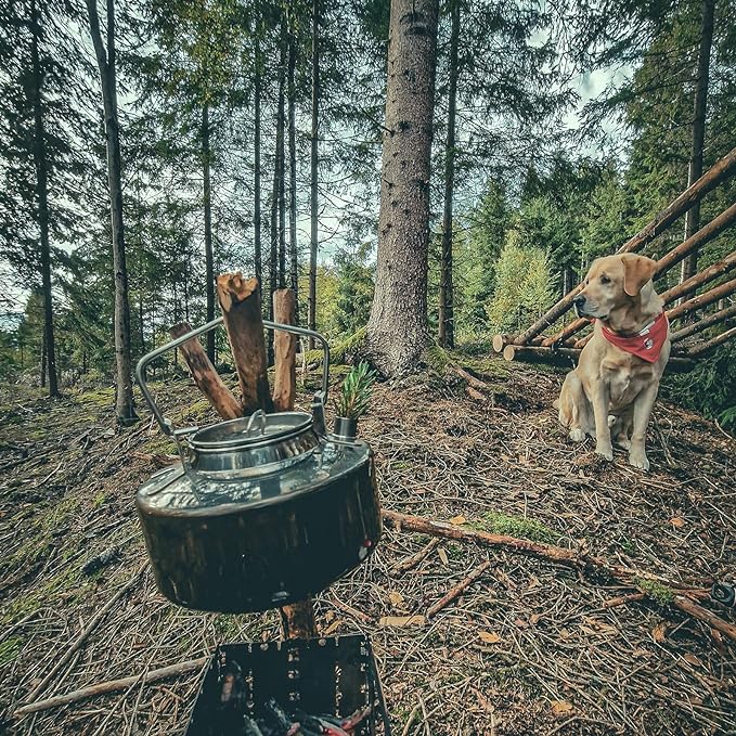 • EASY TO USE: The camp kettle comes with a secure lid ensuring fast boiling and a large rotating handle, ideal for a campfire or easy storage.