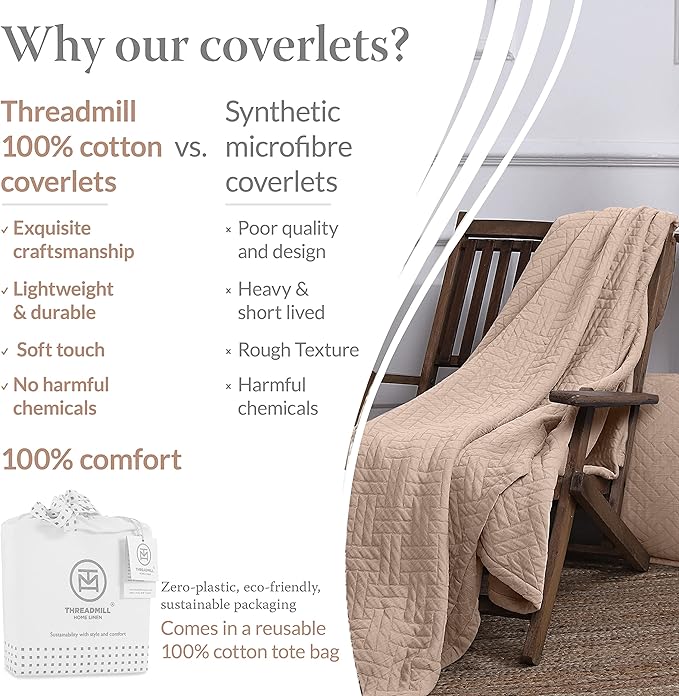 Threadmill Cotton King Pillow Shams Set of 2 | Luxury All-Season 100% Cotton Pillow Covers | Criss Cross Lightweight, Soft, Cozy Decorative Bed Pillow Shams | Beige