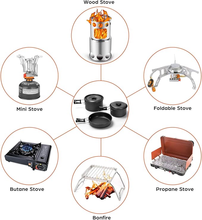 Odoland 16pcs Camping Cookware Mess Kit with Folding Camping Stove, Non-Stick Lightweight Pots Pan Set with Stainless Steel Cups Plates Forks Knives Spoons for Camping, Backpacking, Outdoor Cooking