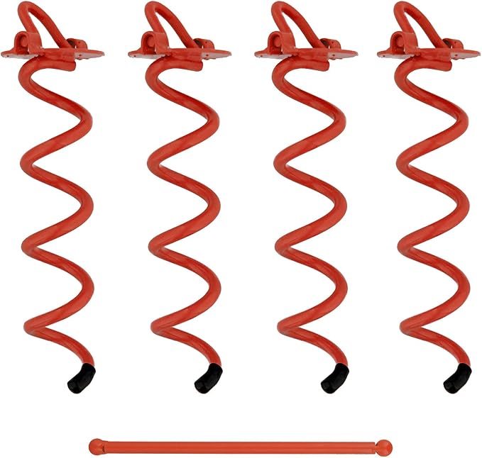 • [Secure Outdoor Furniture and Structures] Whether you are preparing for an oncoming hurricane, tornado season, or just high winds, the 7Penn 10 Inch Red Spiral Ground Stakes with Folding Eyelets ensure stability and durability