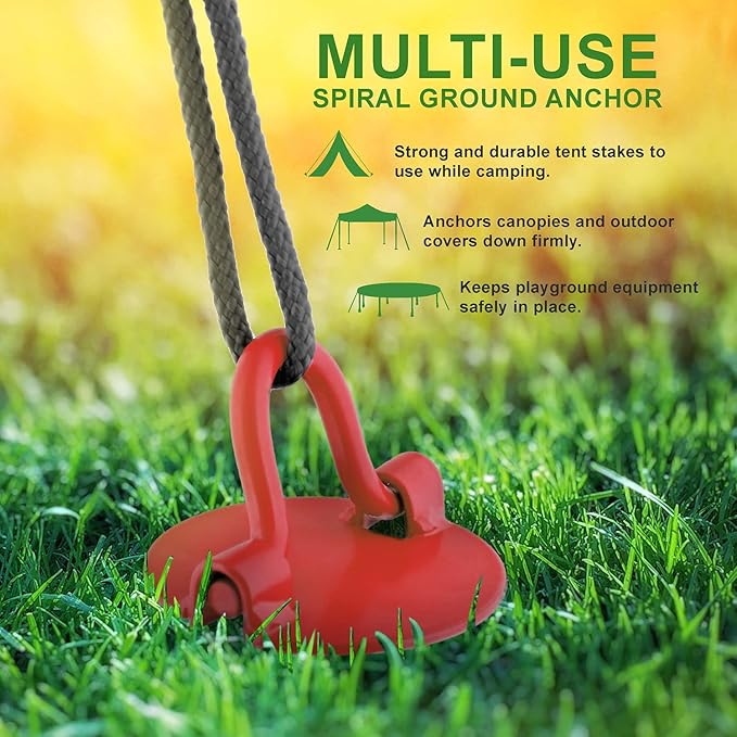 • [Contents]: Red tie down ground anchor set comes with 4 ground screw anchors, 1 torque bar, and 1 carrying storage bag; Tie down rope/straps not included
