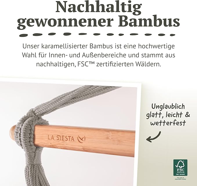 • WEATHERPROOF FABRIC: La Siesta's hanging chair features weatherproof fabric for care-free relaxation in any environment. Quick-drying and easy to maintain, it's a perfect hanging swing chair for outdoor, patio, balcony, or garden.