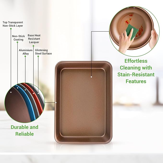 • NON-STICK SURFACE: This cookware set boasts a durable, PFOA/PFOS-free non-stick coating, ensuring effortless food release, easy cleaning, and healthier cooking. Its heat-resistant lacquer exterior stands up well to high temperatures.