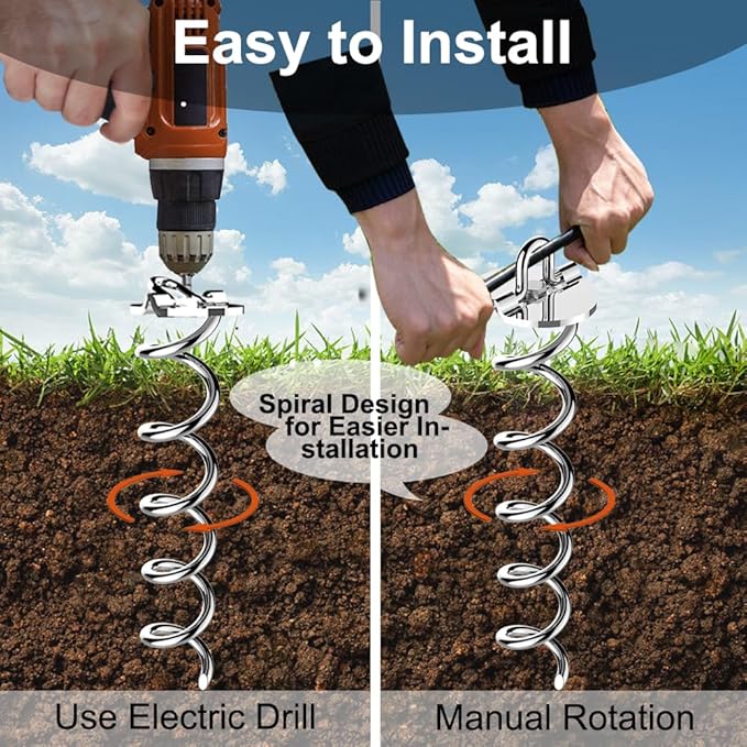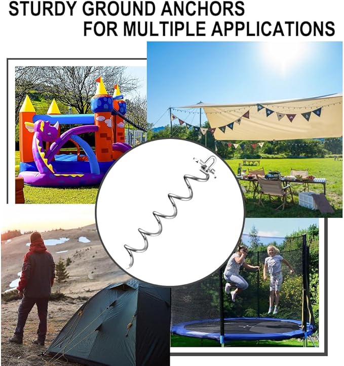 Eurmax USA 4-Pc Pack Spiral Stakes Heavy Duty Anchor Kit Ice Screw Anchor for Trampoline, Tents, tarps, Canopies,car Ports,Dog tie Out and etc Bonus Tie Down Straps 4-Pc Pack (Silver)