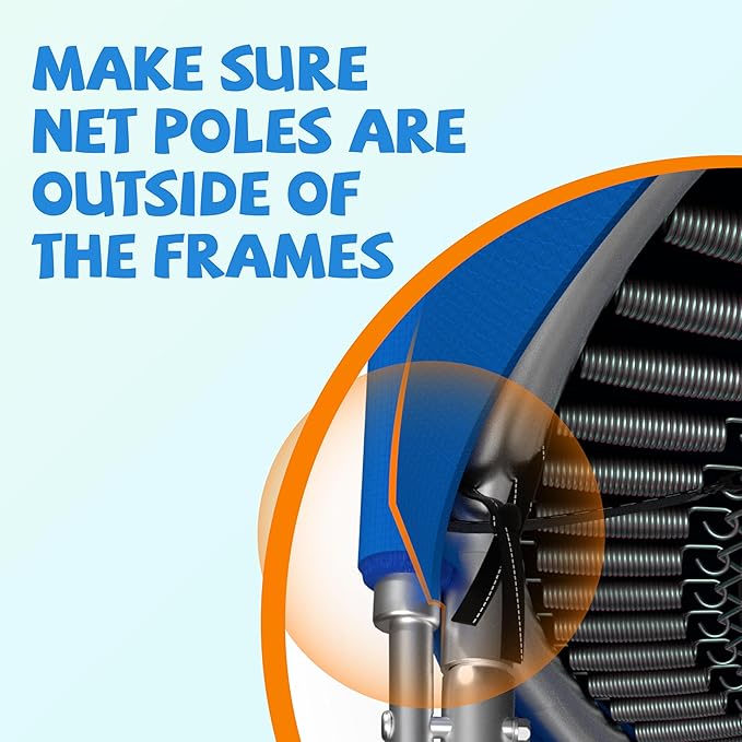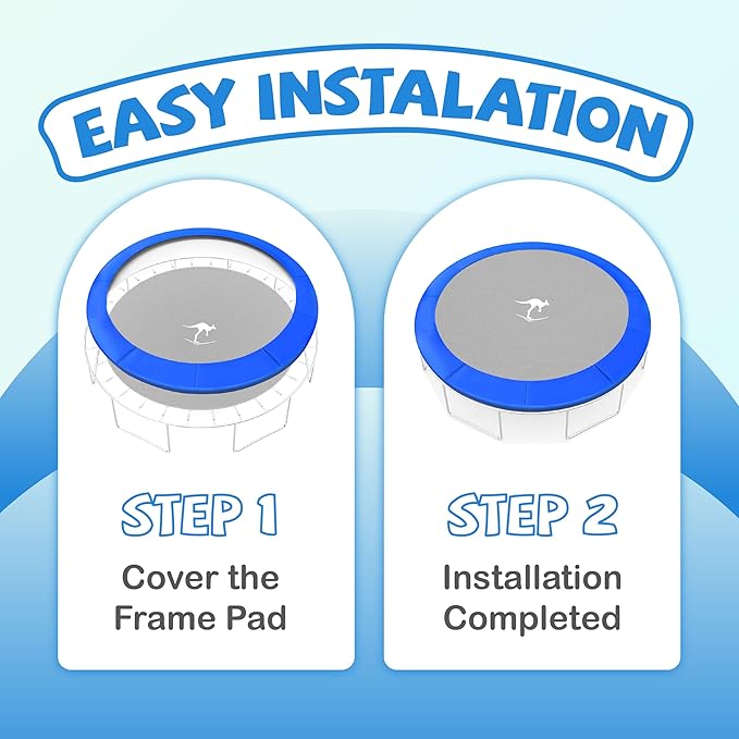 • Specification: Trampoline pad width: 8/10FT: 9.45 inch (24cm), 12FT: 8.66 inch (22cm), 14/15FT: 10.63inch (27cm). Anti-UV/Waterproof/Faded Resistance PE cover,thick EPE foam(16mm), PE bottom, ultra durable for years to use!
