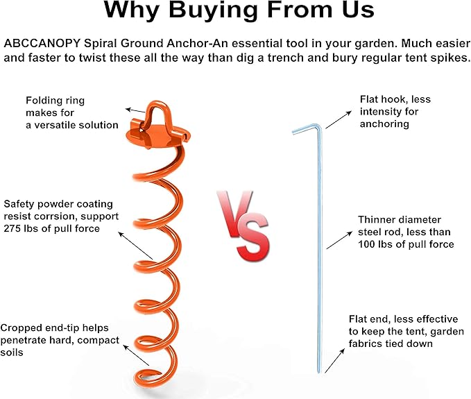 • Easy To Use: Our ground anchor features a cropped spiral bottom end-tip to penetrate all types of earthen surfaces. Simply push the tip in the ground and keep turning easier.