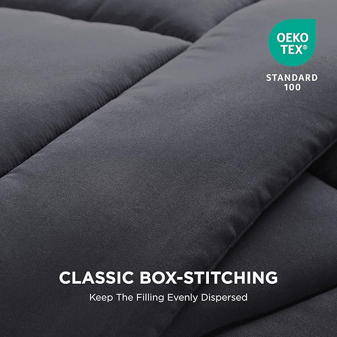• BOX STITCHING DESIGN: Designed with a box-stitch construction that keeps the fluffy fill in place without shifting, the Bedsure Down Alternative Comforter ensures the filling is evenly distributed for the most relaxing sleep back to school