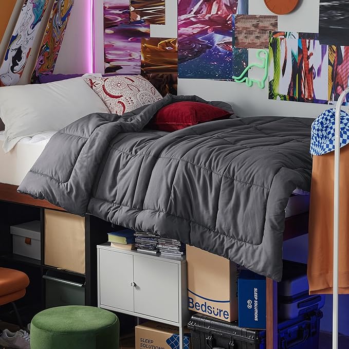 • PRACTICAL DESIGN:With 8 tabs on each side, this comforter versatilely doubles as a duvet insert to precisely match your bedding preference, should you wish to style up dorm decor with a duvet cover