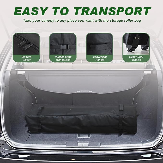• High-Quality Construction:Durable high-grade engineered frame,powder-coated for rust resistance.Features a unique design that eliminates the need for cross bars running through the middle of the canopy,maximizes headroom inside the canopy. You and your guests will enjoy a spacious and open feel beneath the canopy, free from obstructions.