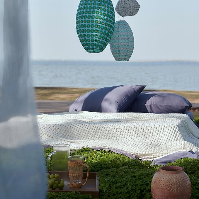 • Breathable & Moisture-Wicking: Made from 50% cotton and 50% rayon derived from bamboo, this cooling blanket naturally absorbs moisture and is exceptionally breathable, providing a comfortable and dry night's sleep for hot sleepers.
