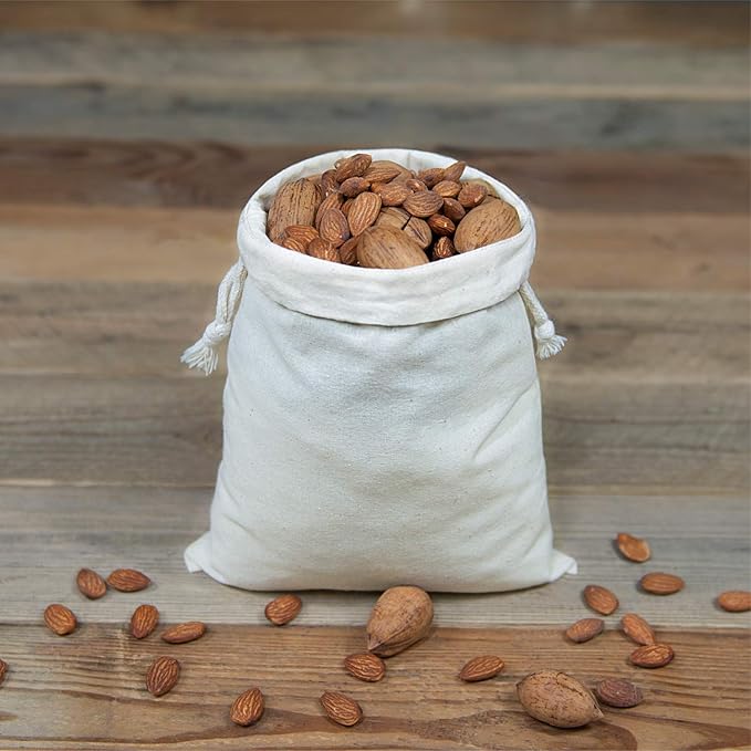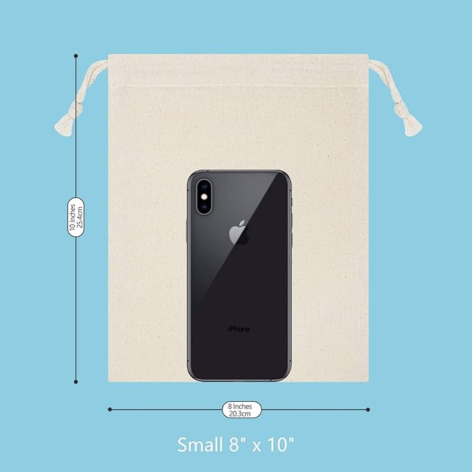 • DURABILITY: 8" x 10", made of 100% natural cotton, the stitches are fine and strong againt tearing. No matter the weight of the stored item, it will not tear or break easily. It's also extremely light at just 0.05 pounds, making it very portable.