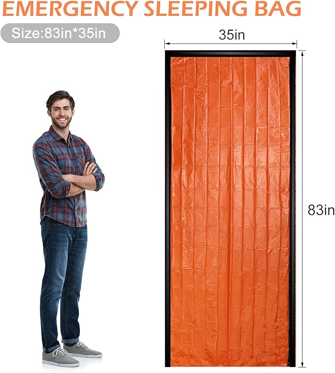 • 【Easy to Use】Just pull out the bivy sack, unroll and climb inside.Emergency sleeping bag can be used as a sleeping bag liner to keep your body temperature by reflecting back and retaining 90% of heat. Orange is a great color for signaling, so it is a great camping survival gear in your bug out bag.