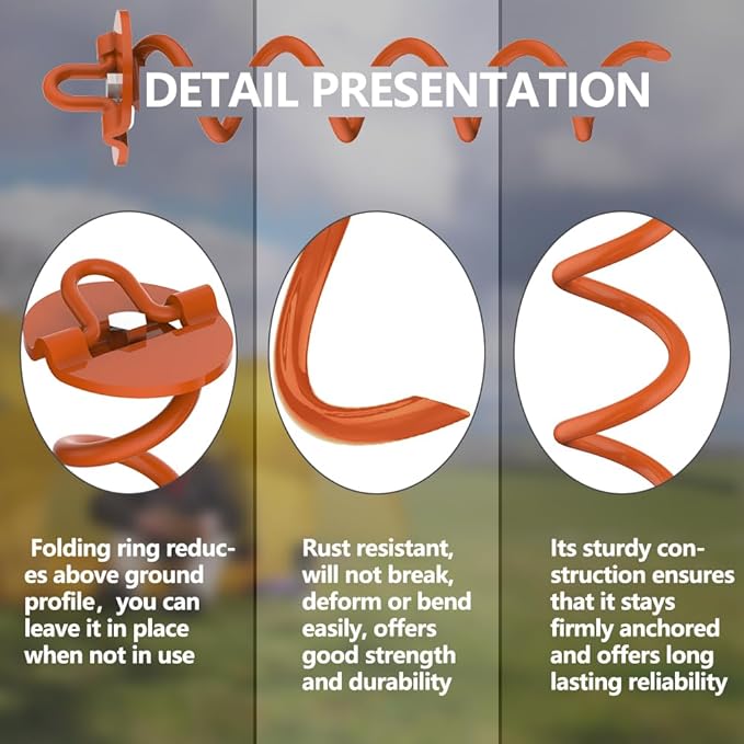 • Durability and Strength: Made of cold, rolled steel for durability and strength.these stakes are designed to withstand the pulling force of dogs, as well as outdoor weather conditions like rain, wind, and temperature changes.