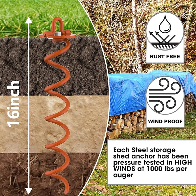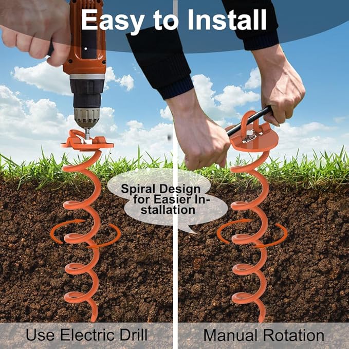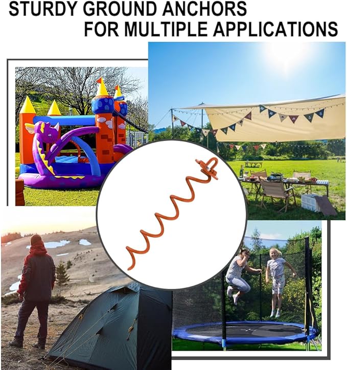 Eurmax USA 4-Pc Pack Spiral Stakes Heavy Duty Anchor Kit Ice Screw Anchor for Trampoline, Tents, tarps, Canopies,car Ports,Dog tie Out and etc Bonus Tie Down Straps 4-Pc Pack (Orange)