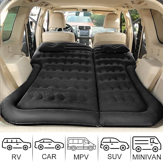 SAYGOGO SUV Air Mattress Camping Bed Cushion Pillow Inflatable Thickened Car Air Bed Mattress with Electric Air Pump Portable Sleeping Pad for Travel Camping Upgraded Version Black