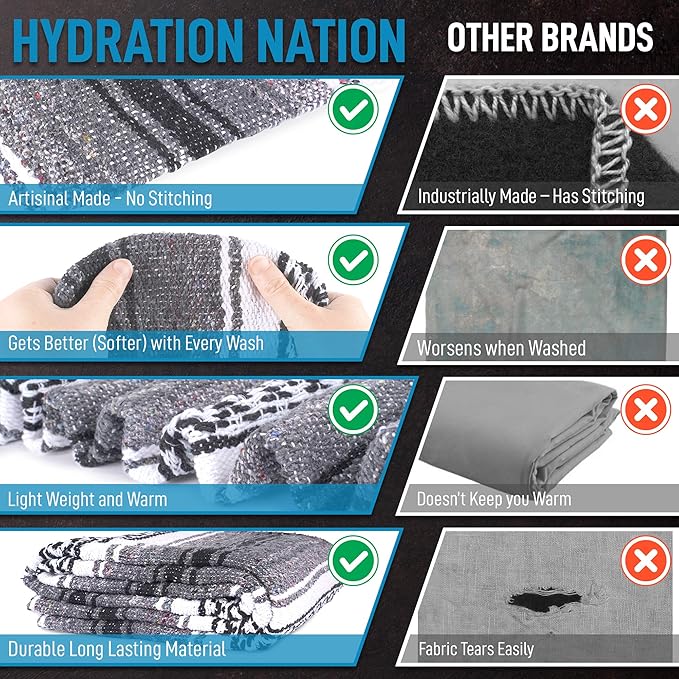 • HYDRATION NATION 5-YEAR GUARANTEE: We have the utmost confidence in our travel blanket and back this up with a 5-year warranty. If there are ever any issues, just contact us, and we will make it right. Stay happy with a snuggly blanket!