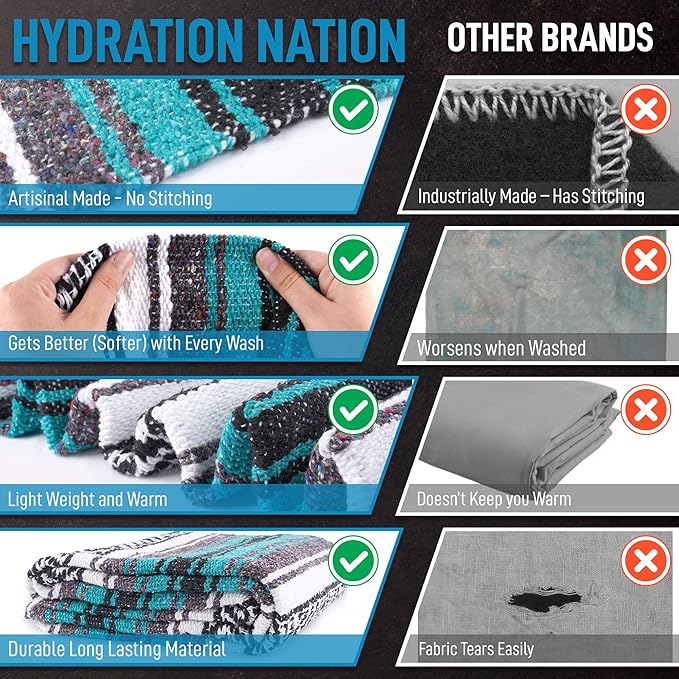 • HYDRATION NATION 5-YEAR GUARANTEE: We have the utmost confidence in our travel blanket and back this up with a 5-year warranty. If there are ever any issues, just contact us, and we will make it right. Stay happy with a snuggly blanket!