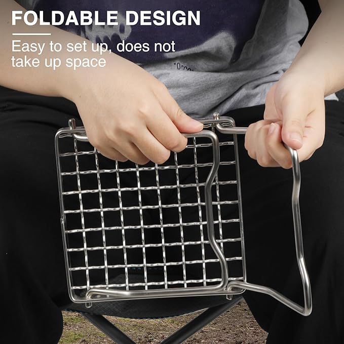 • Premium Build Quality: Crafted from 304 food-grade stainless steel, this Folding Campfire Grill is built to last. It resists high temperatures and corrosion, and its sturdy welds ensure long-term durability, promising countless cooking sessions.​