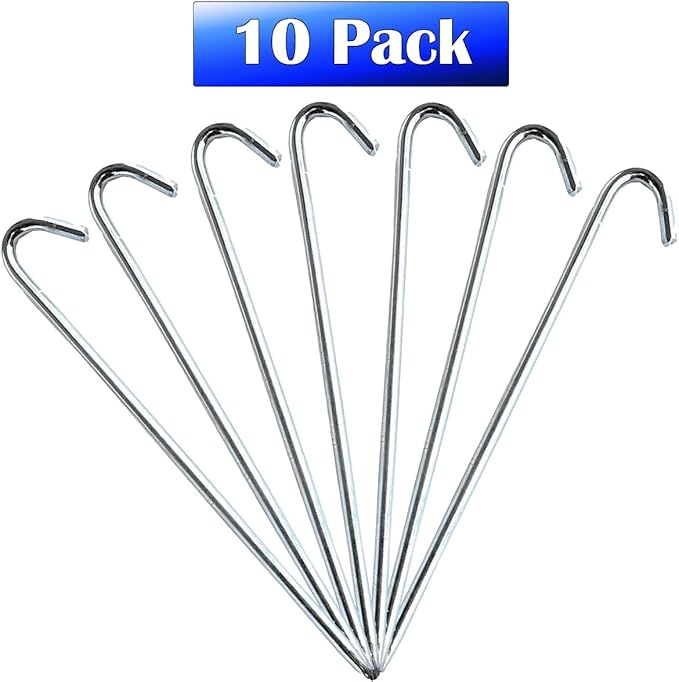 • VERSATILE USAGE: Our steel hook stakes are ideal to anchor small inflatables, for securing fencing, rope tie-offs, outdoor camping tents, yard decorations, or anything that needs to be held to the ground. With a wide range of usage, these ground stakes pair well with web straps, ropes, bungees, or tie-downs to provide stability to your set up.