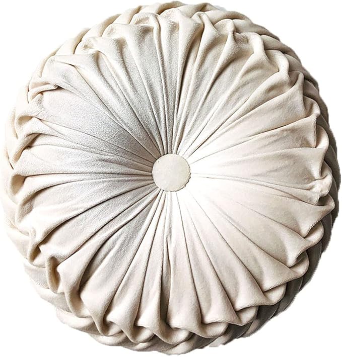 Round Throw Pillow Velvet Home Decoration Pleated Round Pillow Cushion for Couch Chair Bed Car Beige