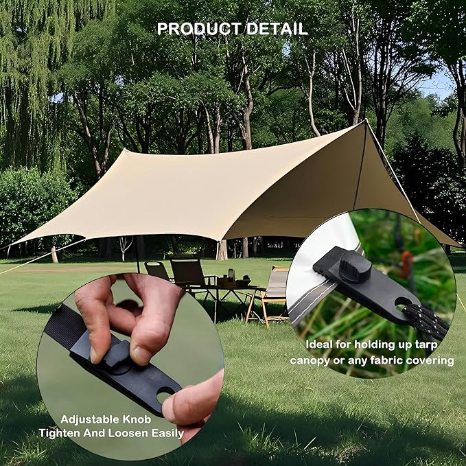 • Heavy duty tarp clips designed with adjustable spiral thumb screws, alligator mouth with teeth holds tarpaulins much more stable. Material: made of PA, it’s sturdy enough to stand strong power, so can bear the pulling force and not easy to get loose after buckle it to tents. Small body and light weight, easy for storage and carrying.