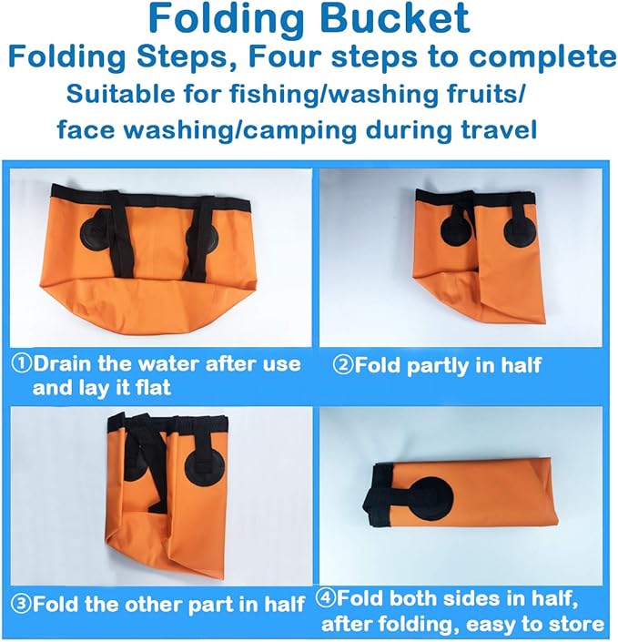 Sunglow Collapsible Fishing Bucket, 3 Gallon Multifunctional Portable Wash Basin - Water Container for Fishing, Camping, Gardening (12L/3gallon (Orange))