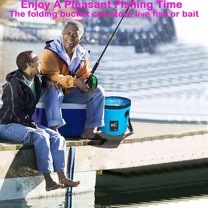 Sunglow Collapsible 5 Gallon Multifunctional Portable Fishing Bucket - Wash Basin Folding Bucket - Water Container for Fishing-Camping-Gardening (20L/5gallon(Blue))
