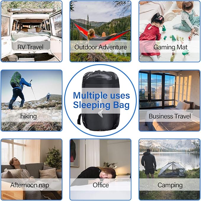 • 【COMFORTABLE & SKIN-FRIENDLY】: We adopt 210T polyester as surface material and hollow cotton as filler. For this reason, the sleeping bag is quite soft, comfortable, skin-friendly and waterproof. It can help you to get rid of a tiring day of hiking, camping, travel , outdoor activities or any other exploration.