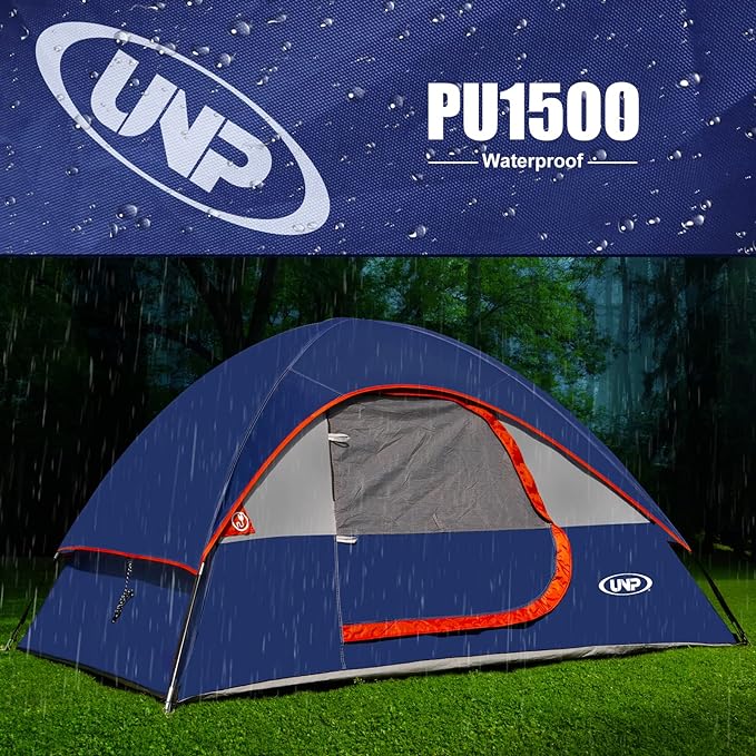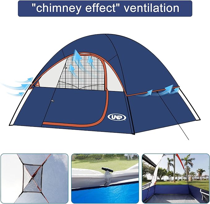 • Windproof & Rainproof: The camping tent is made of stronger tear-resistant polyester.It come with a removable rainfly and two zippers designed for keeping the rain outside the tent. The ropes of tent and piles ensure safety and stability.