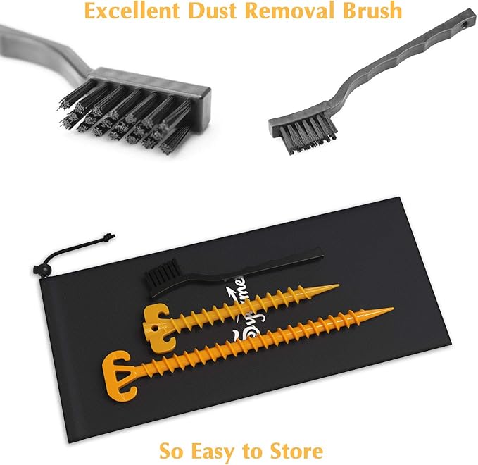 • ☼ Easy to Carry and Clean: Our tent stakes is extremely durable, lightweight & can be stored in the included waterproof bag,the delivered brush is easy to remove sand and dirt which is more convenient to carry and use.