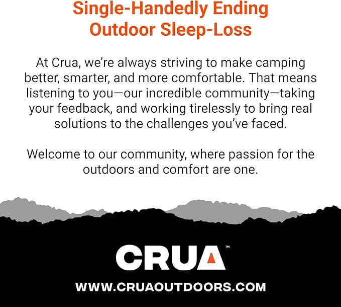 • ENJOY MORE WITH CRUA OUTDOORS: At Crua Outdoors, our mission is to give every camper the best night’s sleep in nature, so you can explore beyond the familiar with the comfort and peace of home.