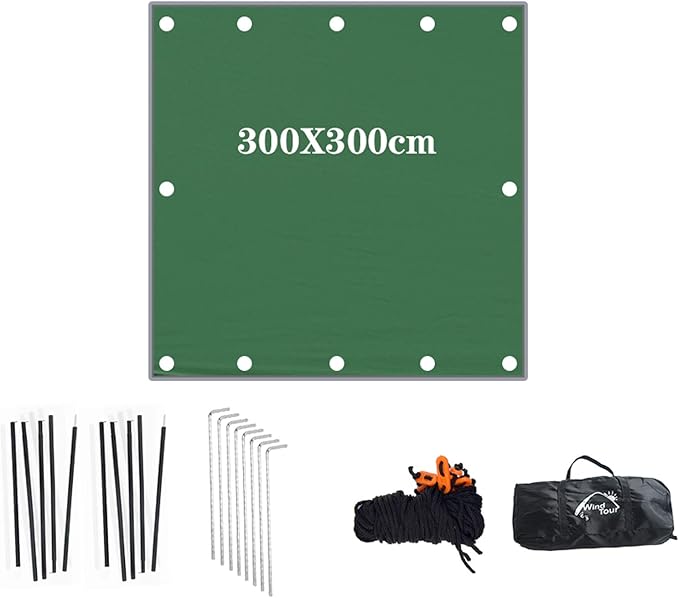Wind Tour Portable Multifunctional Outdoor Camping Traveling Awning Backpacking Tarp Sunshade Lightweight UV Protection and PU 3000mm Waterproof Rain Fly Tarp Shelter (118 * 118 inches)