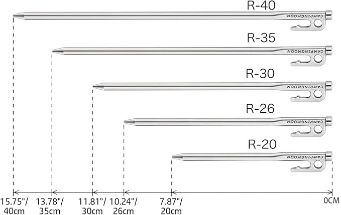 • 【7.87-inch 8pcs set Stainless Steel Tent Stakes】LENGTH:7.87" / 20cm; WEIGHT:4.55oz/129g (each piece),2.27lb/1.03kg (8 pieces)