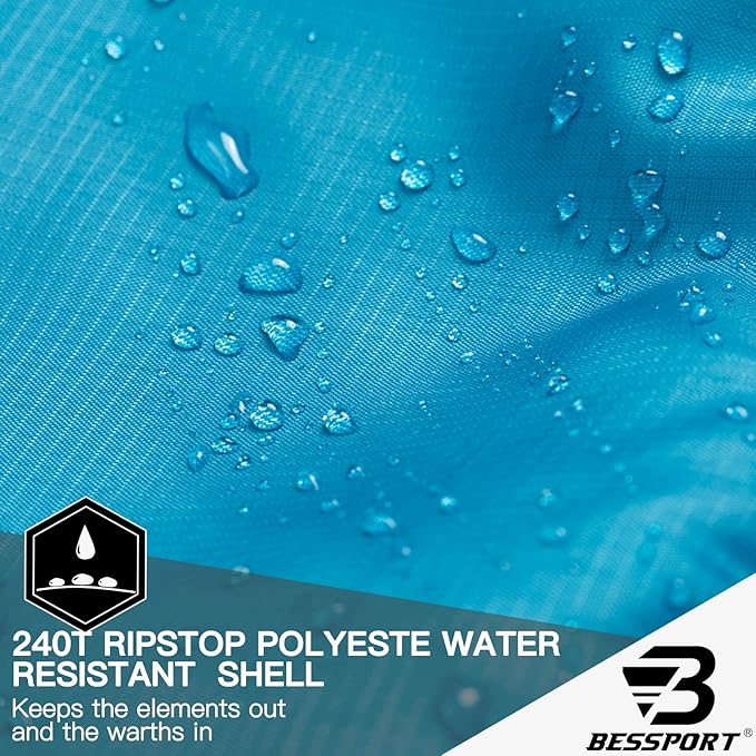 • Water Resistant & Comfort: Lining adopt 240T Rip-stop Polyester Taffeta water-repellent and breathable features, it effectively increases the toughness of the sleeping bag. and with double layer synthetic loft microfiber,provides greater comfort for your body.