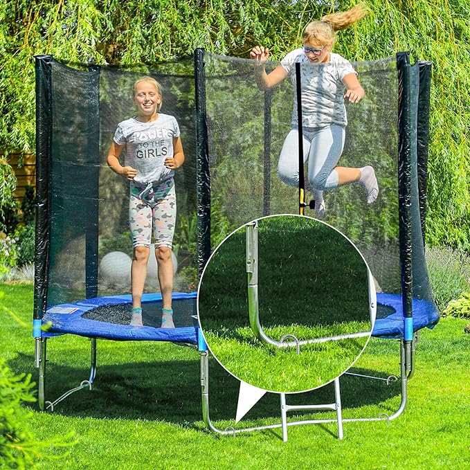 • 【EASY INSTALLATION】 No auxiliary tools required. The chisel pointed end makes the trampoline stakes penetrate into the ground easily. You can step on it to make the rebar stake penetrate deeper into the ground.