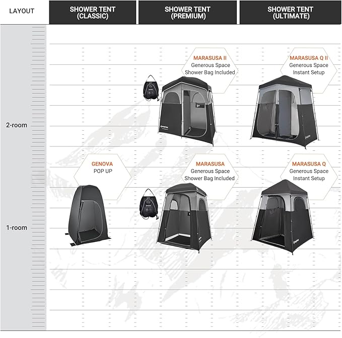 • TOTAL PRIVACY, RAIN OR SHINE: Designed with silver-coated fabric for full opacity and UPF 50+ sun protection, this Privacy Shower Tent ensures you're always covered—literally. The removable rainfly shields you from weather while maintaining complete discretion whether you're showering, changing, or using it as a toilet tent.