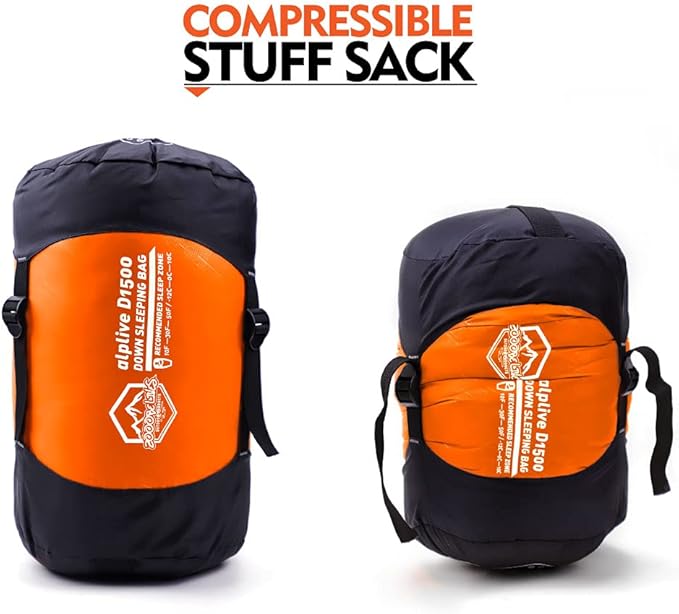 ZOOOBELIVES 10 Degree F Hydrophobic Down Sleeping Bag for Adults - Lightweight and Compact 4-Season Mummy Bag for Backpacking, Camping, Mountaineering and Other Outdoor Activities – Alplive D1500