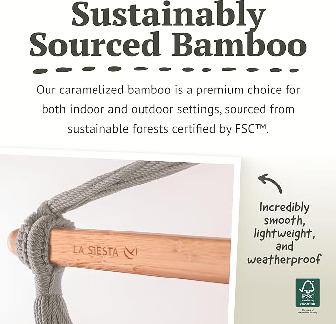 • WEATHERPROOF FABRIC: La Siesta's hanging chair features weatherproof fabric for care-free relaxation in any environment. Quick-drying and easy to maintain, it's a perfect hanging swing chair for outdoor, patio, balcony, or garden.