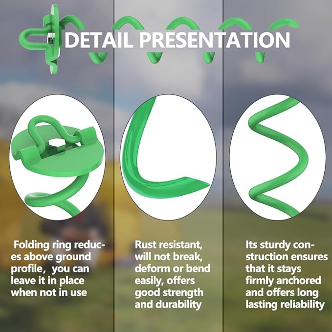 • Durability and Strength: Made of cold, rolled steel for durability and strength.these stakes are designed to withstand the pulling force of dogs, as well as outdoor weather conditions like rain, wind, and temperature changes.