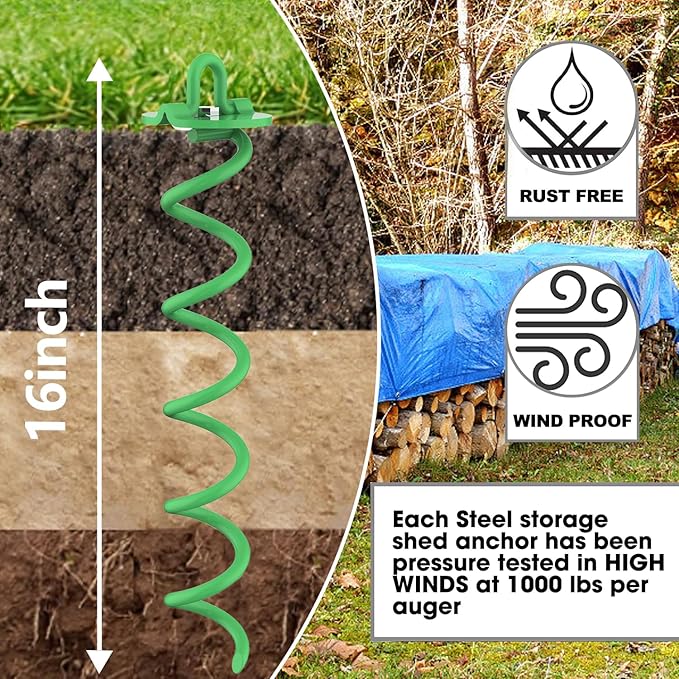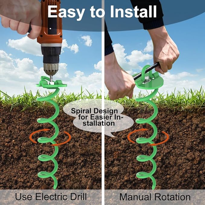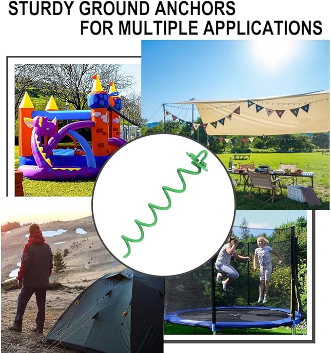 Eurmax USA 4-Pc Pack Spiral Stakes Heavy Duty Anchor Kit Ice Screw Anchor for Trampoline, Tents, tarps, Canopies,car Ports,Dog tie Out and etc Bonus Tie Down Straps 4-Pc Pack (Green)